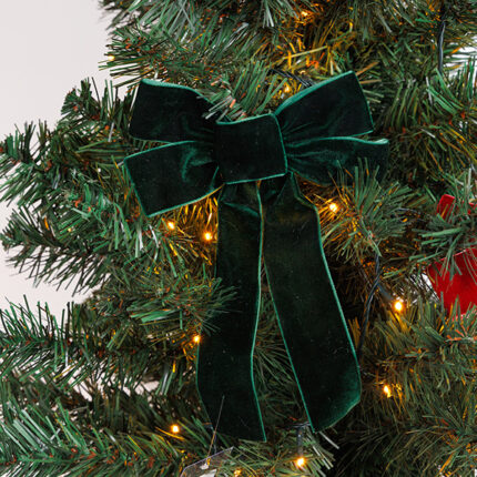 Το πλούσιο, βαθύ σμαραγδί χρώμα σε συνδυασμό με την απαλή βελούδινη υφή χαρίζει μια αίσθηση πολυτέλειας και ζεστασιάς. Με διαστάσεις 16x24 cm, οι φιόγκοι έχουν το ιδανικό μέγεθος για να ξεχωρίζουν χωρίς να υπερφορτώνουν τον χώρο.