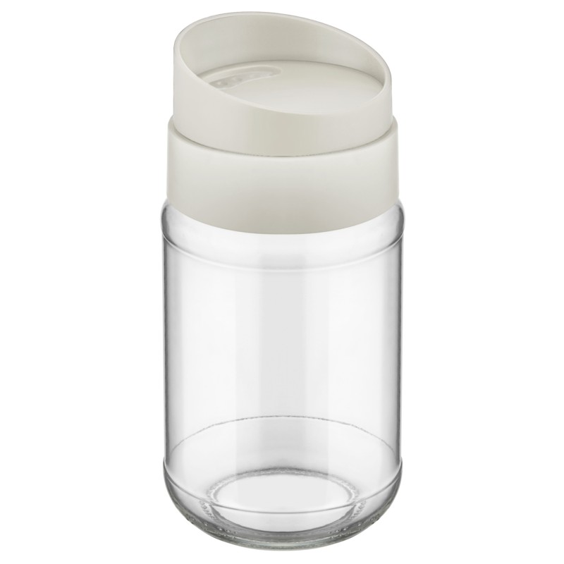 Κατασκευασμένο από ανθεκτικό γυαλί, εξασφαλίζει υγιεινή αποθήκευση χωρίς να επηρεάζει τη γεύση και τα αρώματα των τροφίμων. Το διαφανές σώμα επιτρέπει την εύκολη αναγνώριση του περιεχομένου, ενώ η χωρητικότητα των 380ml το καθιστά ιδανικό για καθημερινή χρήση.