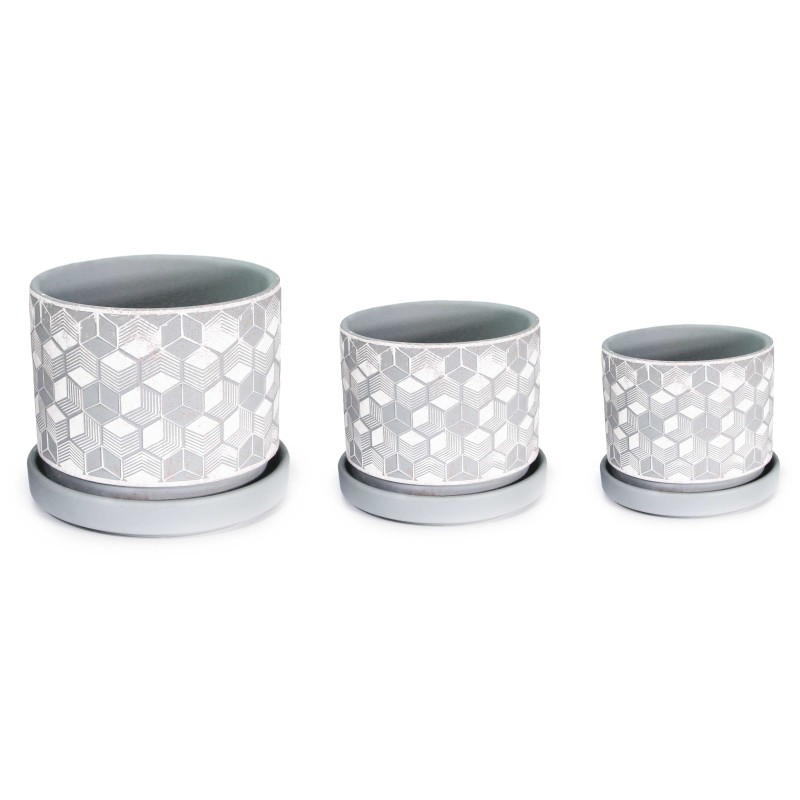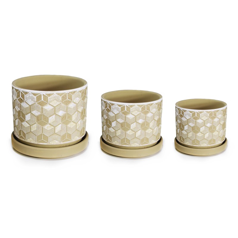 Γλάστρες Κεραμικές Σετ 3τμχ με Πιάτο Νο20256 Σχέδιο Ρόμβος