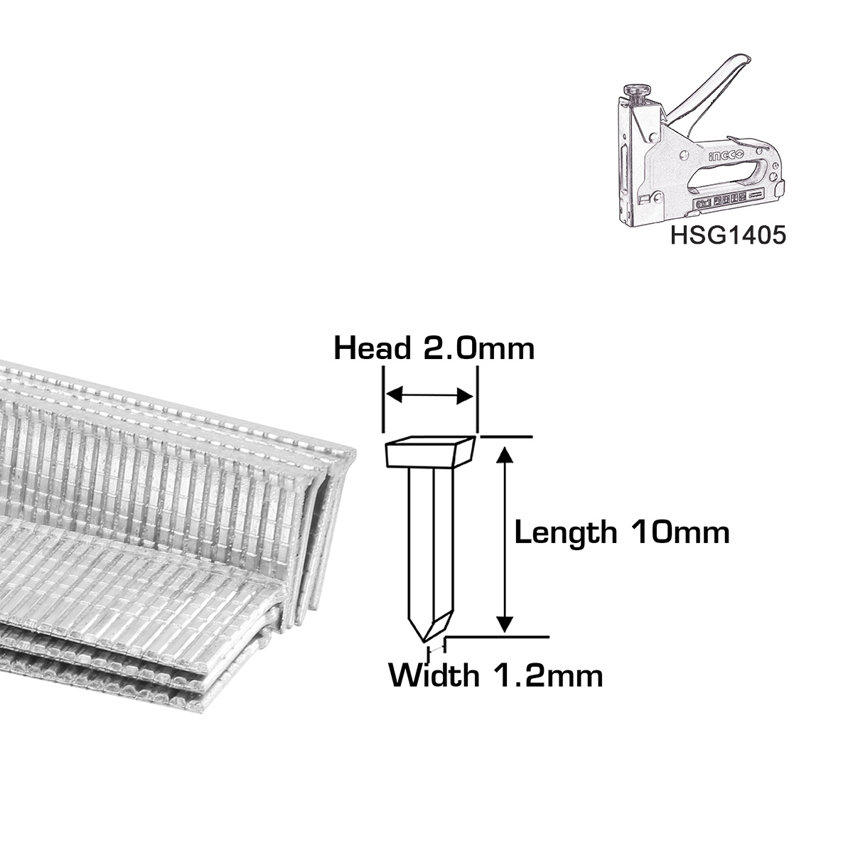 Με διαστάσεις 2 x 1.2 x 10mm, είναι επίσης συμβατά με εργαλεία άλλων εταιρειών που δέχονται το ίδιο μέγεθος καρφιών.