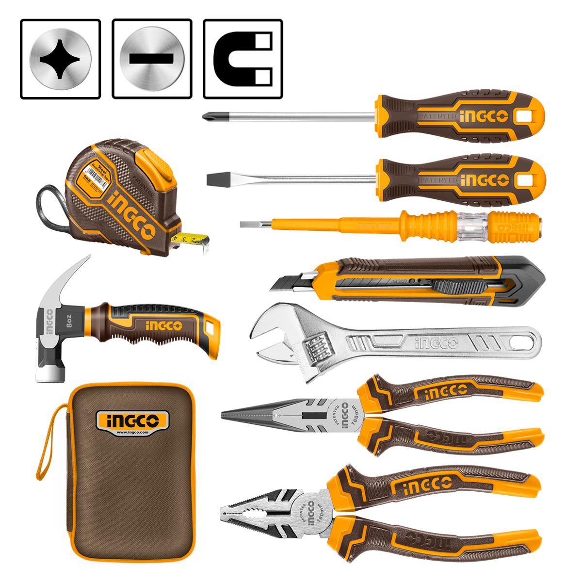 Τα κατσαβίδια διαθέτουν μαγνητική άκρη για μεγαλύτερη ευκολία στη χρήση, ενώ οι εργονομικές λαβές εξασφαλίζουν άνετο και σταθερό κράτημα. Το σετ περιλαμβάνει βασικά εργαλεία που καλύπτουν ένα ευρύ φάσμα εφαρμογών και συνοδεύεται από υφασμάτινη θήκη για εύκολη αποθήκευση και μεταφορά.