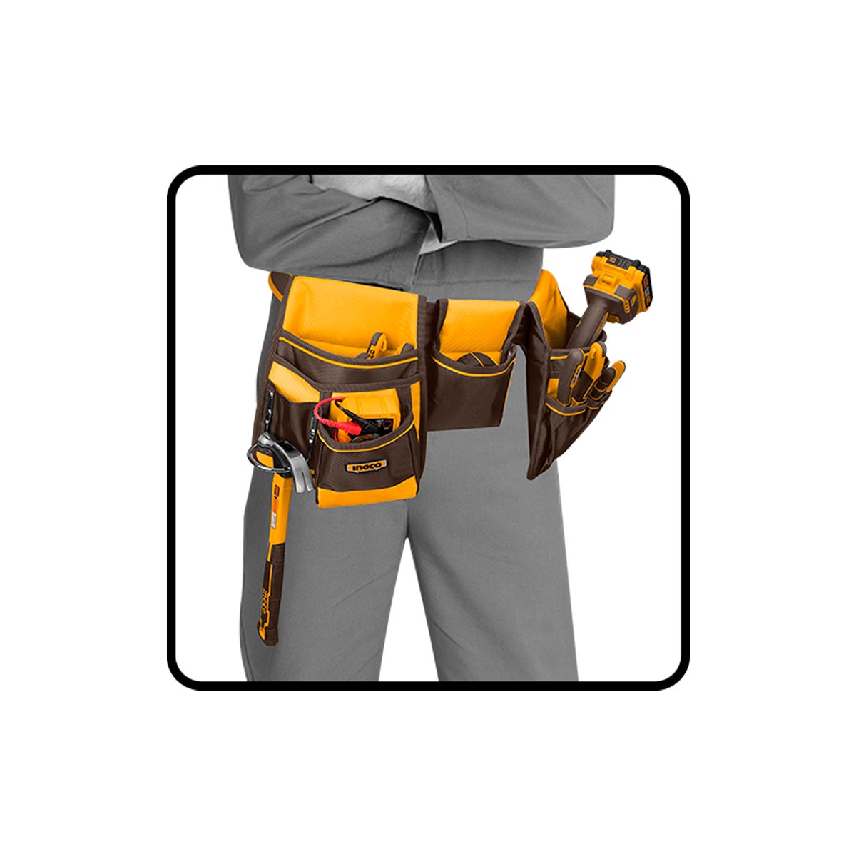 Κατασκευασμένη από υψηλής ποιότητας αδιάβροχο πολυεστέρα 1680D, προσφέρει μεγάλη αντοχή στη φθορά και στις απαιτητικές συνθήκες εργασίας. Διαθέτει 9 θήκες πολλαπλών χρήσεων και ειδική θέση για σφυρί, καλύπτοντας τις βασικές ανάγκες του επαγγελματία.