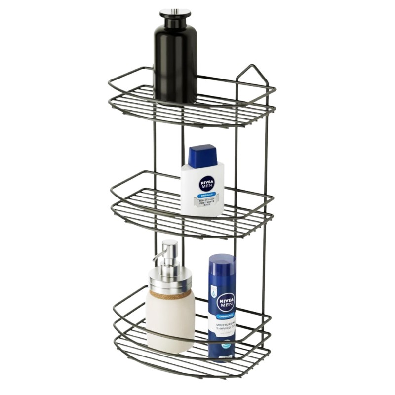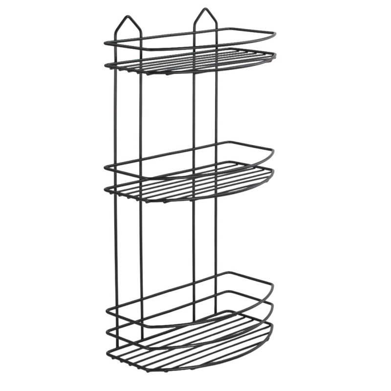 Κατασκευασμένη από ανθεκτικό μέταλλο σε μαύρη απόχρωση, συνδυάζει αντοχή και μοντέρνα αισθητική, ταιριάζοντας εύκολα σε κάθε σύγχρονο περιβάλλον. Τα τρία επίπεδα προσφέρουν μεγαλύτερη χωρητικότητα, ιδανική για την οργάνωση σαμπουάν, καλλυντικών και άλλων ειδών καθημερινής χρήσης.