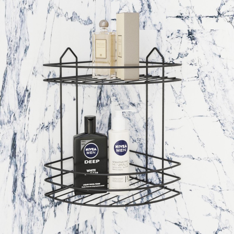 Κατασκευασμένη από ανθεκτικό μέταλλο σε μαύρη απόχρωση, συνδυάζει αντοχή και μοντέρνα αισθητική, ταιριάζοντας εύκολα σε κάθε σύγχρονο χώρο. Είναι ιδανική για χρήση σε μπάνιο, καθώς αντέχει στην καθημερινή υγρασία και βοηθά στη σωστή οργάνωση των προϊόντων σας.