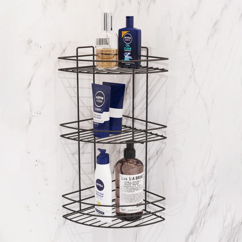 Κατασκευασμένη από ανθεκτικό μέταλλο σε μαύρη απόχρωση, συνδυάζει αντοχή και μοντέρνα αισθητική, ταιριάζοντας εύκολα σε κάθε σύγχρονο περιβάλλον. Τα τρία επίπεδα προσφέρουν μεγαλύτερη χωρητικότητα, ιδανική για την οργάνωση σαμπουάν, καλλυντικών και άλλων ειδών καθημερινής χρήσης.
