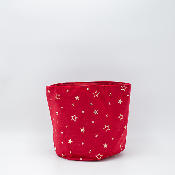 Καλαθάκι Κόκκινο Βελούδο με Σαμπανί Αστεράκια 20x20cm – Χριστουγεννιάτικη Διακόσμηση