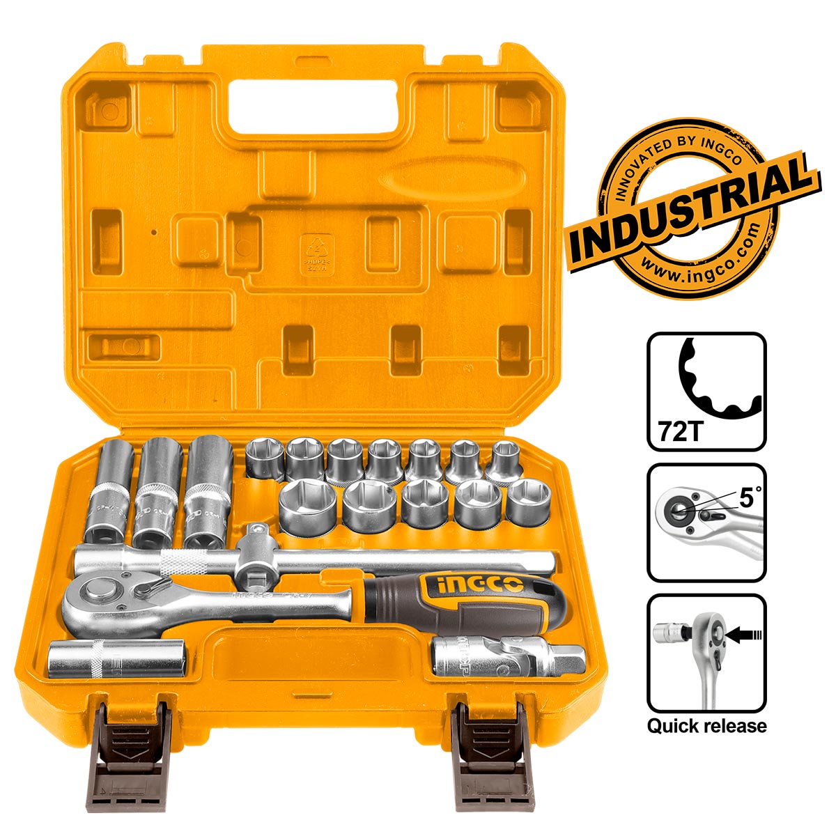 Κατασκευασμένα από υψηλής ποιότητας Cr-V (50BV30) με θερμική επεξεργασία, τα εργαλεία προσφέρουν μεγάλη αντοχή στη φθορά και αξιόπιστη απόδοση. Η καστάνια 72 δοντιών εξασφαλίζει ομαλή και ακριβή λειτουργία ακόμα και σε περιορισμένους χώρους, ενώ η εργονομική λαβή προσφέρει άνετο χειρισμό.