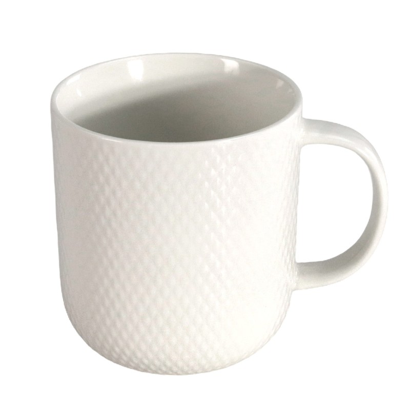 Απολαύστε τον καφέ, το τσάι ή το ζεστό σας ρόφημα με αυτή την κομψή λευκή κεραμική κούπα με ανάγλυφη επιφάνεια. Η εργονομική της σχεδίαση και η χωρητικότητα 340ml την καθιστούν ιδανική για καθημερινή χρήση, ενώ η ανάγλυφη υφή προσφέρει μοναδική αίσθηση στο κράτημα. Ιδανική για την κουζίνα σας ή ως όμορφο δώρο για φίλους και οικογένεια.