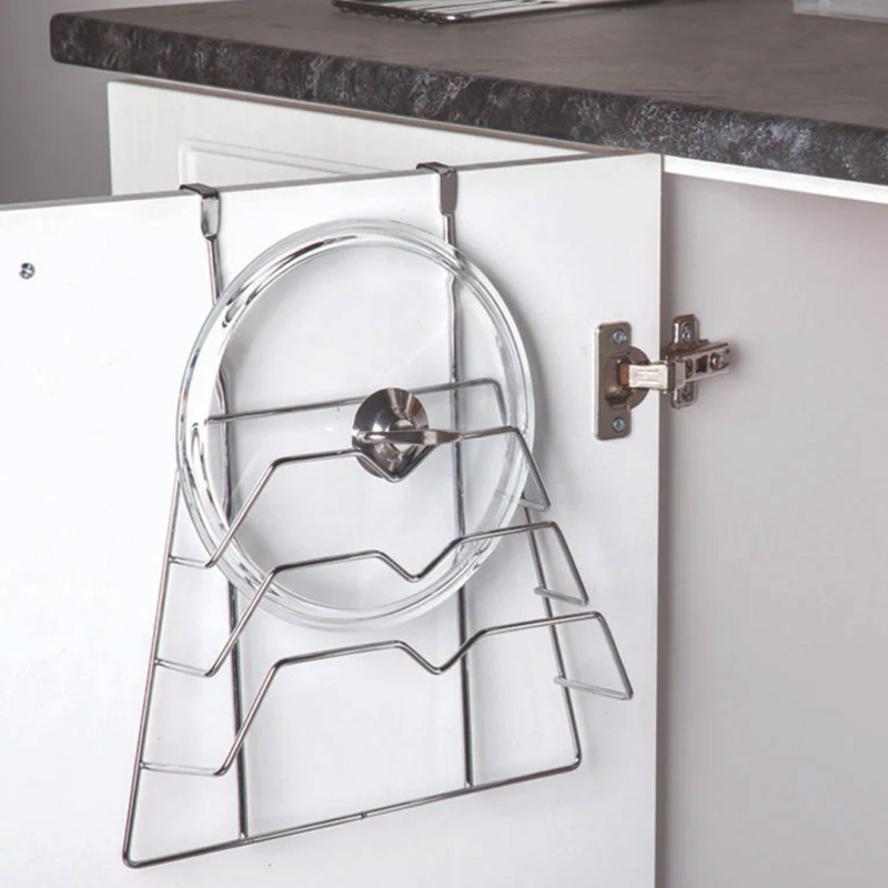 Το κρεμαστό ράφι σε μαύρο μεταλλικό design χωράει καπάκια και σκεύη, εξοικονομώντας χώρο και προσφέροντας μοντέρνο στυλ στα ντουλάπια σου.