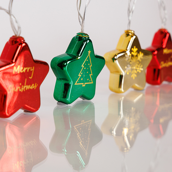 Σειρά 10 LED με Πλαστικά Χρωματιστά Αστέρια – Θερμό Λευκό, Μπαταρίας, Χρονοδιακόπτης, IP20