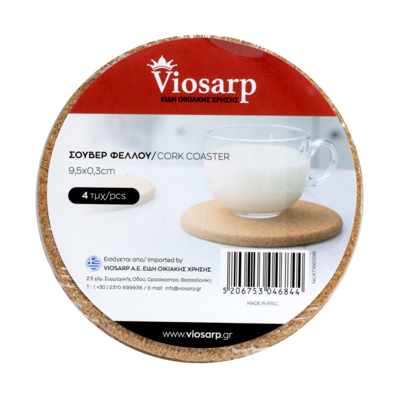 Το σετ σουβέρ από φελλό NoKT166139B αποτελεί μια πρακτική και οικολογική επιλογή για την προστασία των επιφανειών σας. Κατασκευασμένα από φυσικό φελλό, προσφέρουν αντοχή και απορροφητικότητα, προστατεύοντας τραπέζια και πάγκους από υγρασία, λεκέδες και θερμότητα.