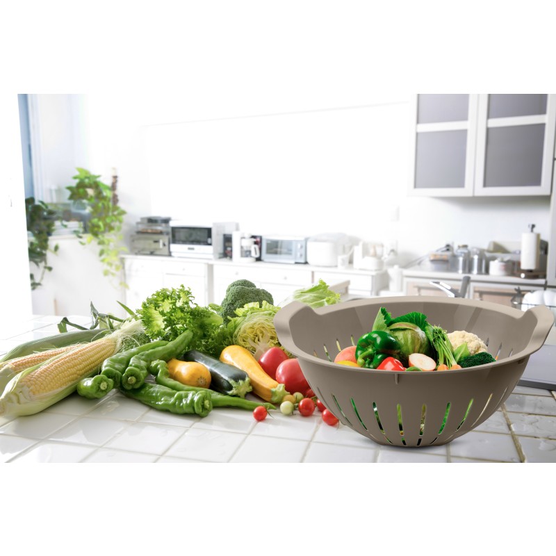 Κατασκευασμένο από ανθεκτικό πλαστικό, είναι ελαφρύ και πρακτικό, κατάλληλο για στράγγισμα ζυμαρικών, λαχανικών, φρούτων και άλλων τροφίμων. Οι οπές του επιτρέπουν την αποτελεσματική αποστράγγιση, ενώ καθαρίζεται εύκολα μετά τη χρήση.