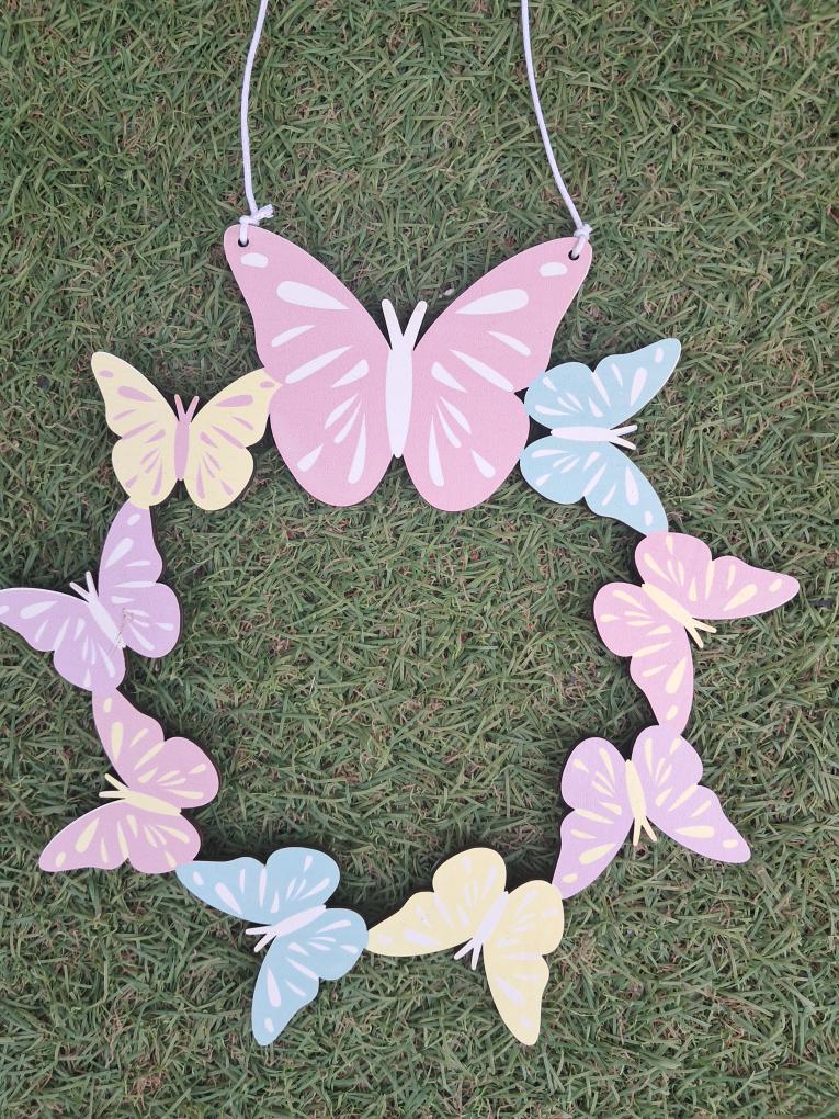 Στεφάνι Πόρτας Ξύλινο Ανοιξιάτικο Πεταλούδα 20cm
