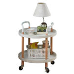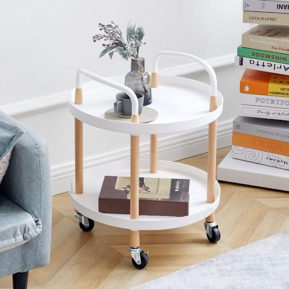 Στρογγυλό Βοηθητικό Τραπεζάκι Μεταλλικό με Ρόδες Λευκό / Φυσικό Μ48xΠ48xΥ51.5εκ.